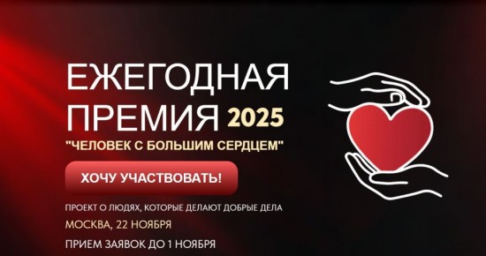 22 ноября в Москве состоится Всероссийская премия «Человек с большим сердцем», учрежденная АНО «Летящие звезды» для поощрения граждан и организаций, внесших значимый вклад в общество.К участию приглашаются волонтеры, благотворители, социальные...