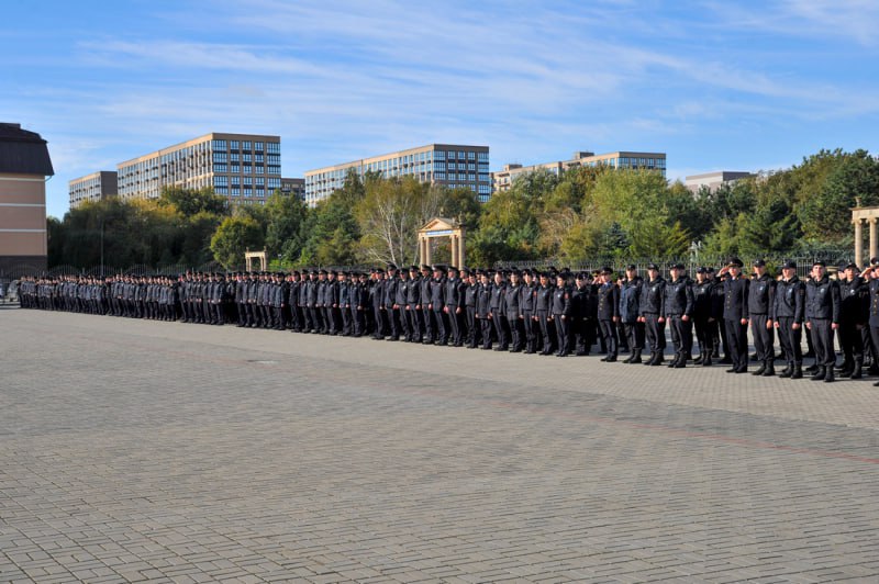 Почетные гости привели курсантов к Присяге и вручили им первые служебные удостоверения. Под аккомпанемент духового оркестра личный состав университета исполнил Государственный гимн Российской Федерации.