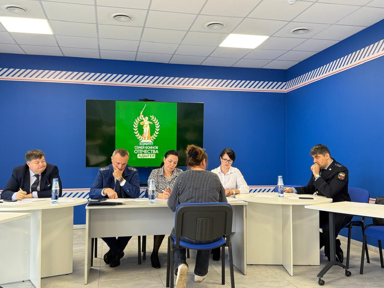 Встреча прошла с участием Уполномоченного по правам человека в Республике Адыгея Михаила Шебанца, вице-президента Адвокатской палаты Республики Адыгея Елены Телегиной, начальника отдела организации исполнительного производства, исполнительного розыска, реализации имущества должников УФССП России по Республике Адыгея Шираза Акопяна, врио начальника отделения правового обеспечения, контрольно-надзорной и разрешительной деятельности УФССП России по Республике Адыгея Юлии Семенюк, руководителя Комитета семей воинов Отечества по Республике Адыгея Любови Штро.
