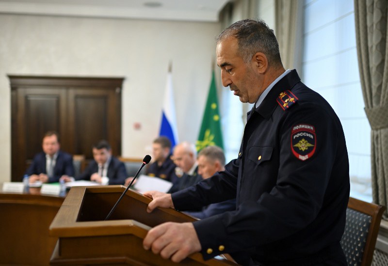 МВД по Республике Адыгея на заседании представляли заместитель министра внутренних дел полковник полиции Махмуд Тлюстангелов и заместитель начальника управления по контролю за оборотом наркотиков полковник полиции Аслан Агаржаноков.