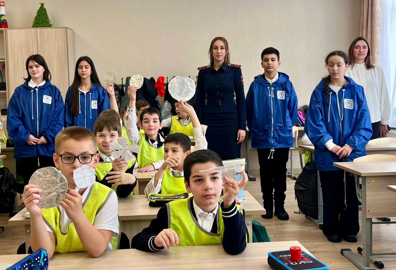 Госавтоинспекторы и юные инспекторы движения напомнили ребятам о важности использования световозвращающих элементов и соблюдения правил безопасного поведения на дороге.