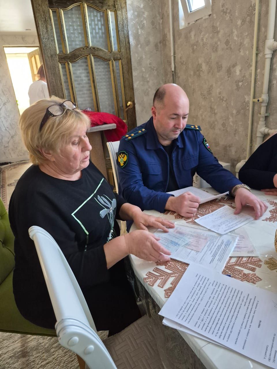 Прокурор Майкопского района Аскер Набоков совместно с представителем регионального отделения фонда «Защитники Отечества» Людмилой Штро провел выездной прием членов семей участников СВО по месту их жительства.