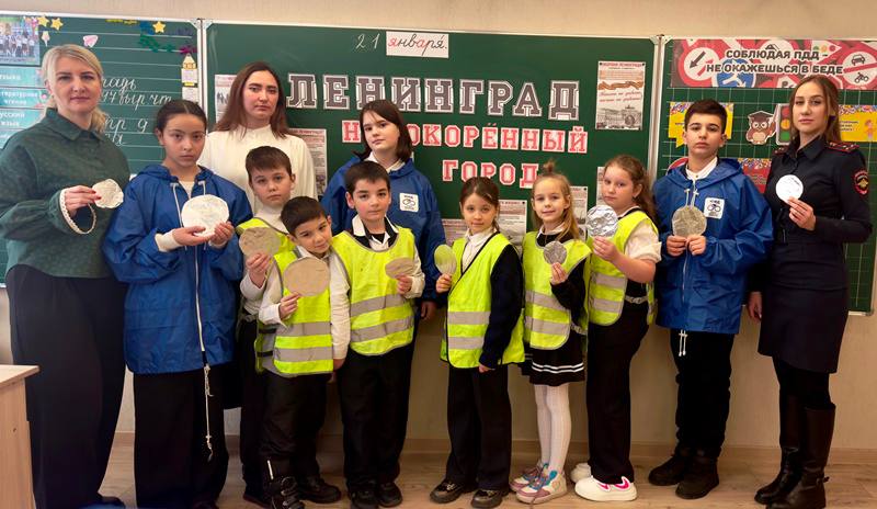 В преддверии Дня полного освобождения Ленинграда от фашистской блокады в одной из школ Майкопа прошел урок мужества, на котором присутствовали сотрудники городской Госавтоинспекции вместе с юными инспекторами дорожного движения. Организаторы посвятили его одной из самых трагичных и, одновременно, славных страниц истории Великой Отечественной войны - блокаде Ленинграда. Ребятам рассказали не только о битве за город, но и о «Дороге жизни» - магистрали, проложенной по льду Ладожского озера, по которой осуществлялось снабжение осажденного Ленинграда, и которая стала спасением для сотен тысяч его жителей. Одним из символов памяти о тех событиях является акция «Цветок жизни», напоминающая о детях-ленинградцах, погибших во время блокады. Под руководством педагогов ребята собственноручно изготовили символы надежды и жизни, «Блокадные светлячки», которые жители блокадного города крепили на одежду, чтобы быть заметнее на погрузившихся в темноту улицах. Представитель Госавтоинспекции старший лейтенант полиции Бэлла Бардюг вместе со своими юными помощниками рассказала о правилах поведения на проезжей части. Офицер полиции напомнила школьникам о важности использования световозвращающих элементов в темное время суток и в условиях недостаточной видимости, что особенно актуально в зимний период. Ребята не только с большим интересом прослушали рассказ о героической истории нашей страны, но и вспомнили о правилах безопасного поведения на дорогах.