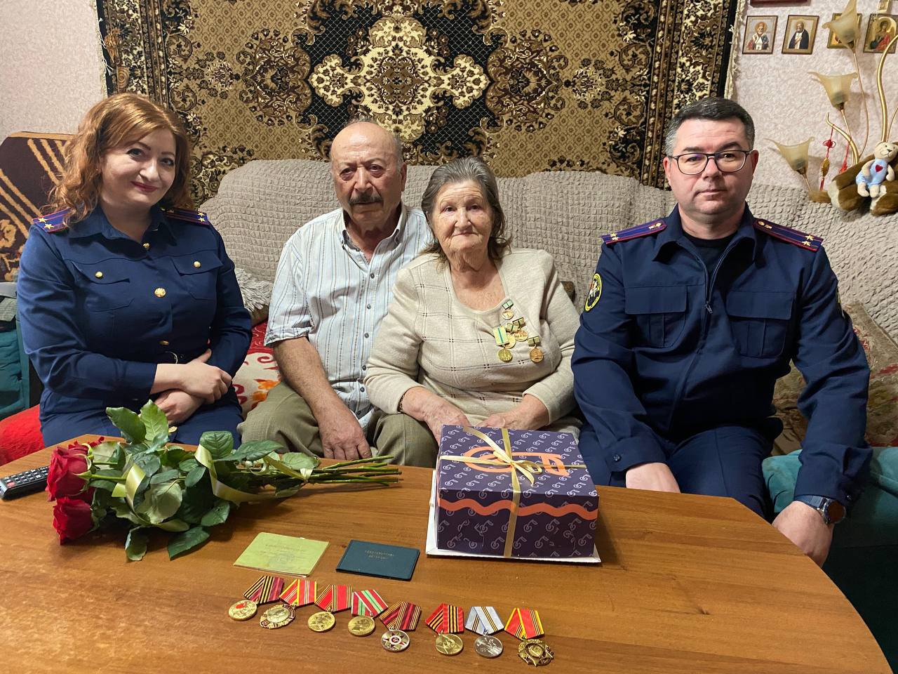 Помощник руководителя следственного управления Роман Шевченко и старший инспектор Эльвира Бленегапцева поздравили Людмилу Степановну с памятной датой, пожелали ей здоровья, долгих лет жизни и мирного неба над головой.