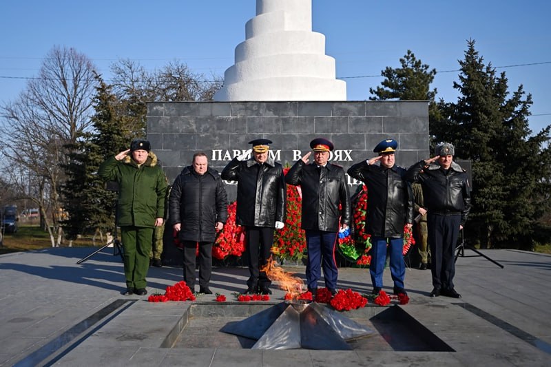 В Адыгее руководство и сотрудники МВД приняли участие в церемонии возложения цветов к Вечному огню.
