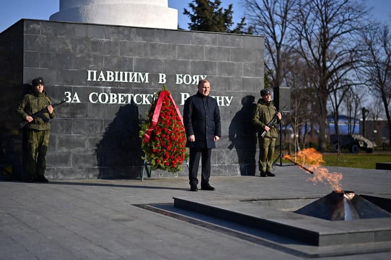 Сегодня отмечается 83-я годовщина освобождения города Майкопа от немецко-фашистских захватчиков. В честь воинов-освободителей у мемориала павшим героям в Майкопе состоялось торжественное возложение венков и цветов. В церемонии приняли участие Глава Адыгеи Мурат Кумпилов, руководители органов исполнительной и законодательной власти, ветераны, учащиеся учебных заведений города.