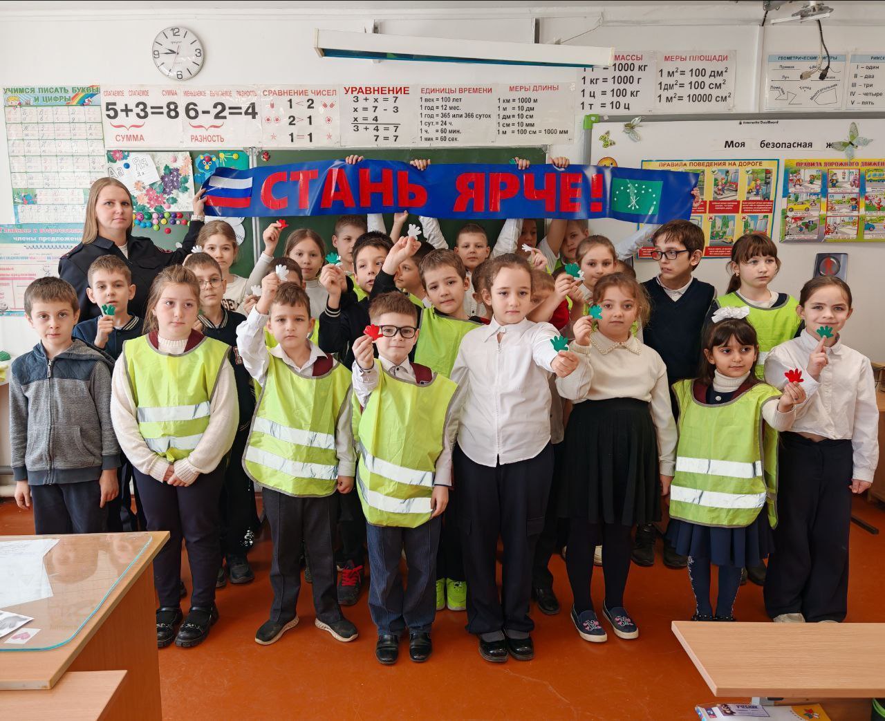 Тахтамукайского района совместно с представителями отряда юных инспекторов движения провели профилактическое мероприятие «Стань ярче!».