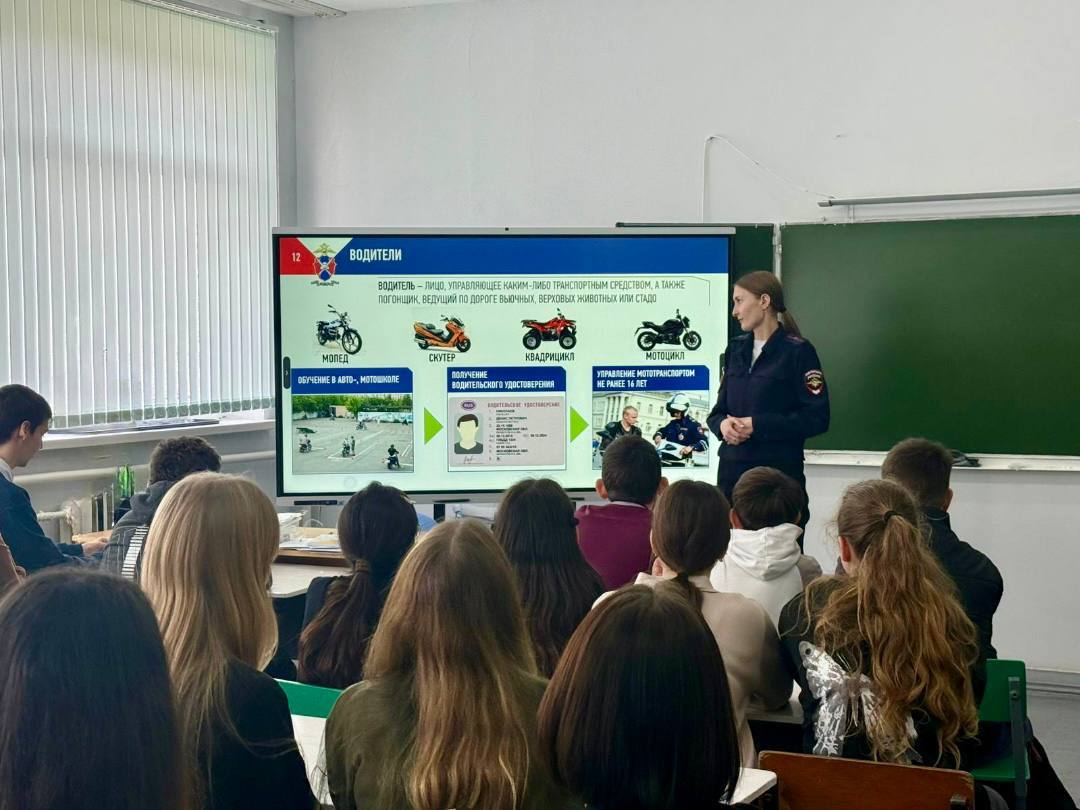 В рамках реализации проекта «Классные встречи» сотрудники отделения Госавтоинспекции по Гиагинскому району посетили МБОУ СОШ №10. Целью визита стала профилактика дорожно-транспортного травматизма среди подростков и разъяснение норм законодательства. В ходе беседы инспекторы напомнили учащимся старших классов основные правила для пешеходов и требования безопасности при нахождении в общественном транспорте. Особое внимание было уделено актуальной в весенне-летний период проблеме — управлению транспортными средствами несовершеннолетними. Сотрудники Госавтоинспекции подробно разъяснили подросткам правовые последствия и риски для жизни при управлении мопедами, мотоциклами и питбайками без соответствующего права управления. Инспекторы подчеркнули, что отсутствие навыков вождения и знания ПДД в сочетании с высокой скоростью мототранспорта часто приводит к происшествиям с тяжкими последствиями. Важно понимать, что ответственность за такие нарушения ложится не только на подростков, но и на их родителей. Питбайк не является средством передвижения по жилым улицам, это техника для закрытых спортивных площадок.