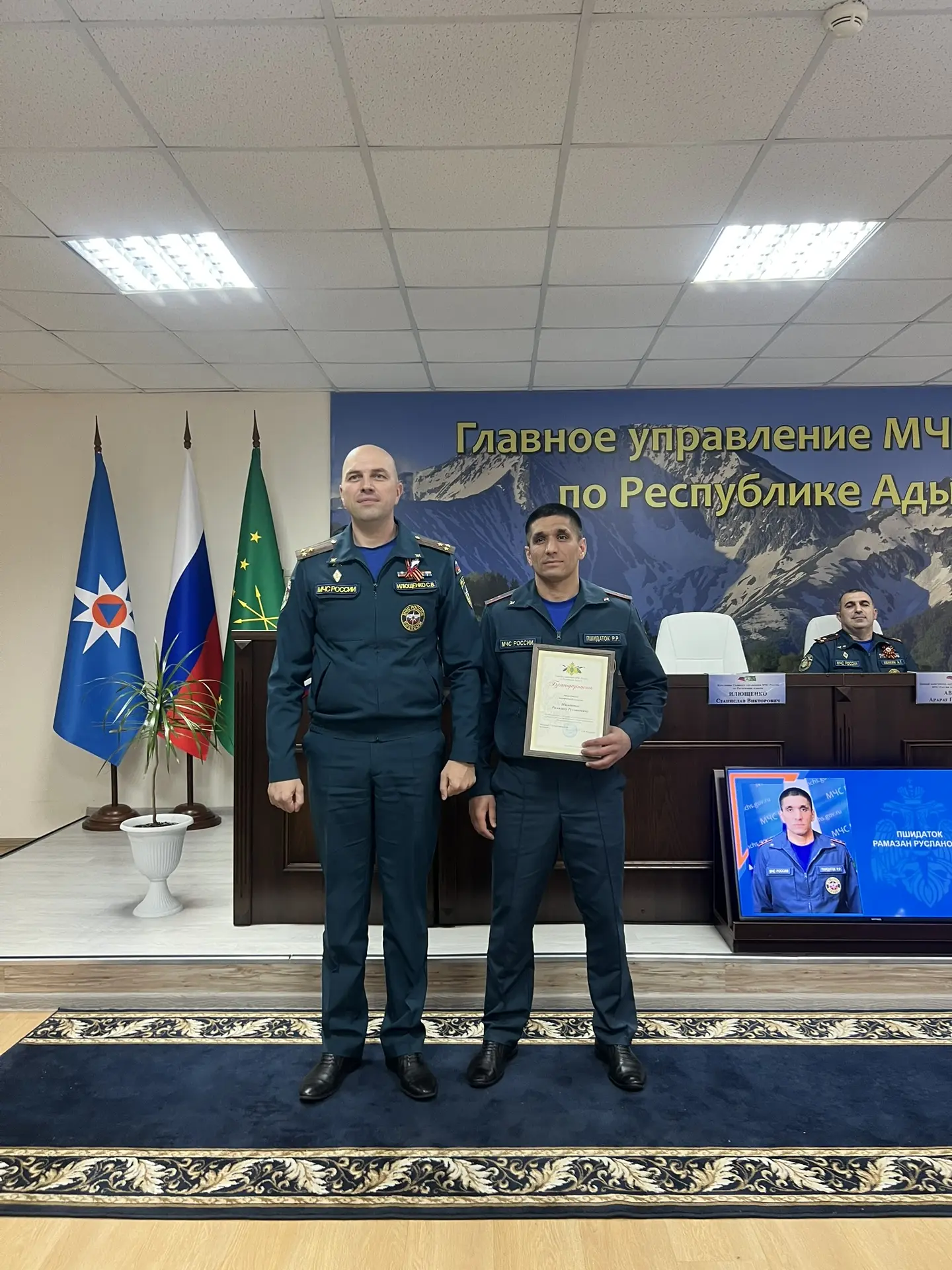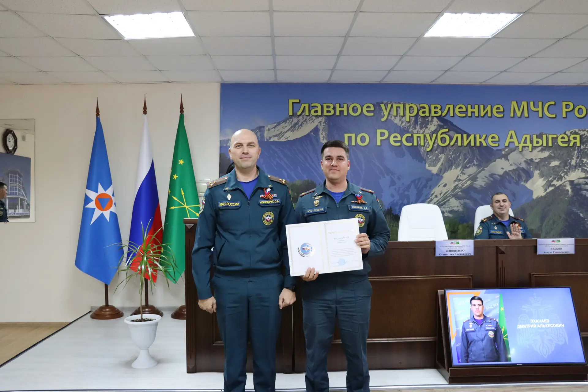 В актовом зале Главного управления МЧС России по Республике Адыгея состоялось торжественное мероприятие, посвященное празднованию 377-ой годовщины со Дня образования пожарной охраны России.