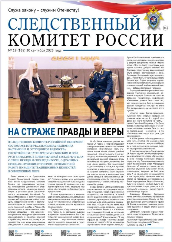 Предлагаем ознакомиться с новым выпуском газеты «Следственный комитет России» 18 (168) от 30 сентября 2025 года на официальном сайте СК России (https://pressa.sledcom.ru/). Подписывайтесь на Следком по...