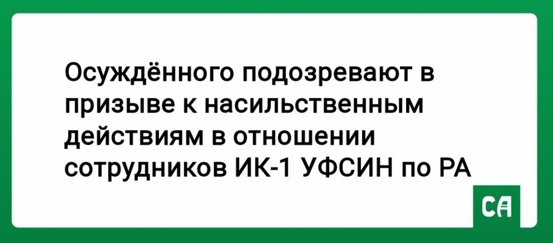 Осуждённого подозревают в призыве к насильственным действиям в отношении сотрудников ИК-1 УФСИН по Адыгее
