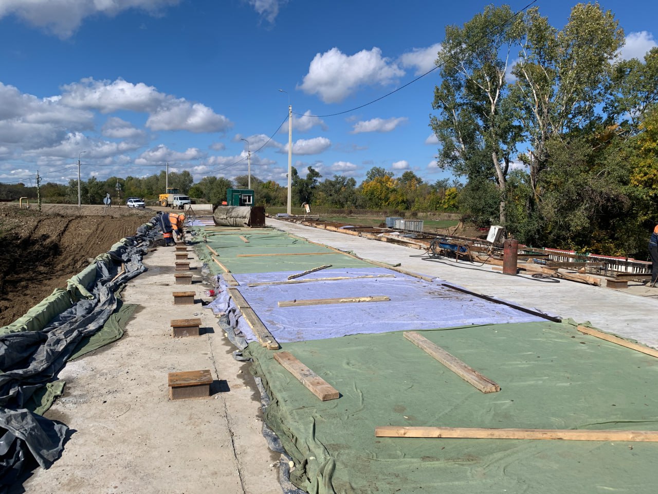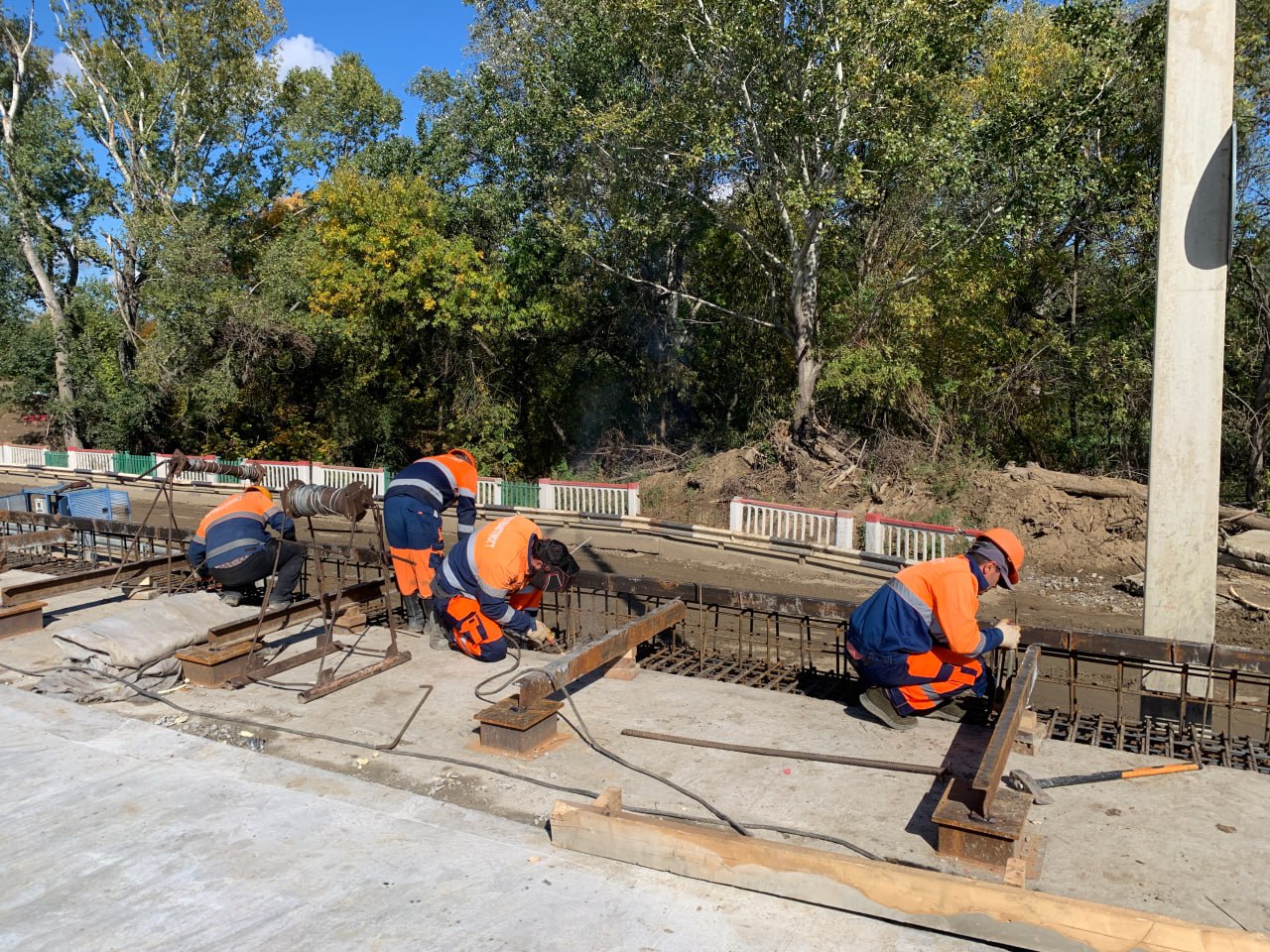 «Перед основными работами были установлены временные дорожные знаки и схемы объезда. Мостовики возвели на объекте временный технологичный мост для демонтажа старого и строительства нового сооружения, пробурили и омоноличили опоры, смонтиронтировали балки, устроили выравнивающий бетонный слой. На завершающем этапе специалисты демонтируют временный технологичный мост, уложат асфальтобетонное покрытие на сооружении и на подъездах к нему, обустроят тротуары и нанесут горизонтальная разметка. На сегодняшний день готовность объекта составляет более 80%. Завершить работы планируется к 1 декабря», сообщил начальник отдела строительства Управления автомобильных дорог «Адыгеяавтодор» Павел Бахтин.