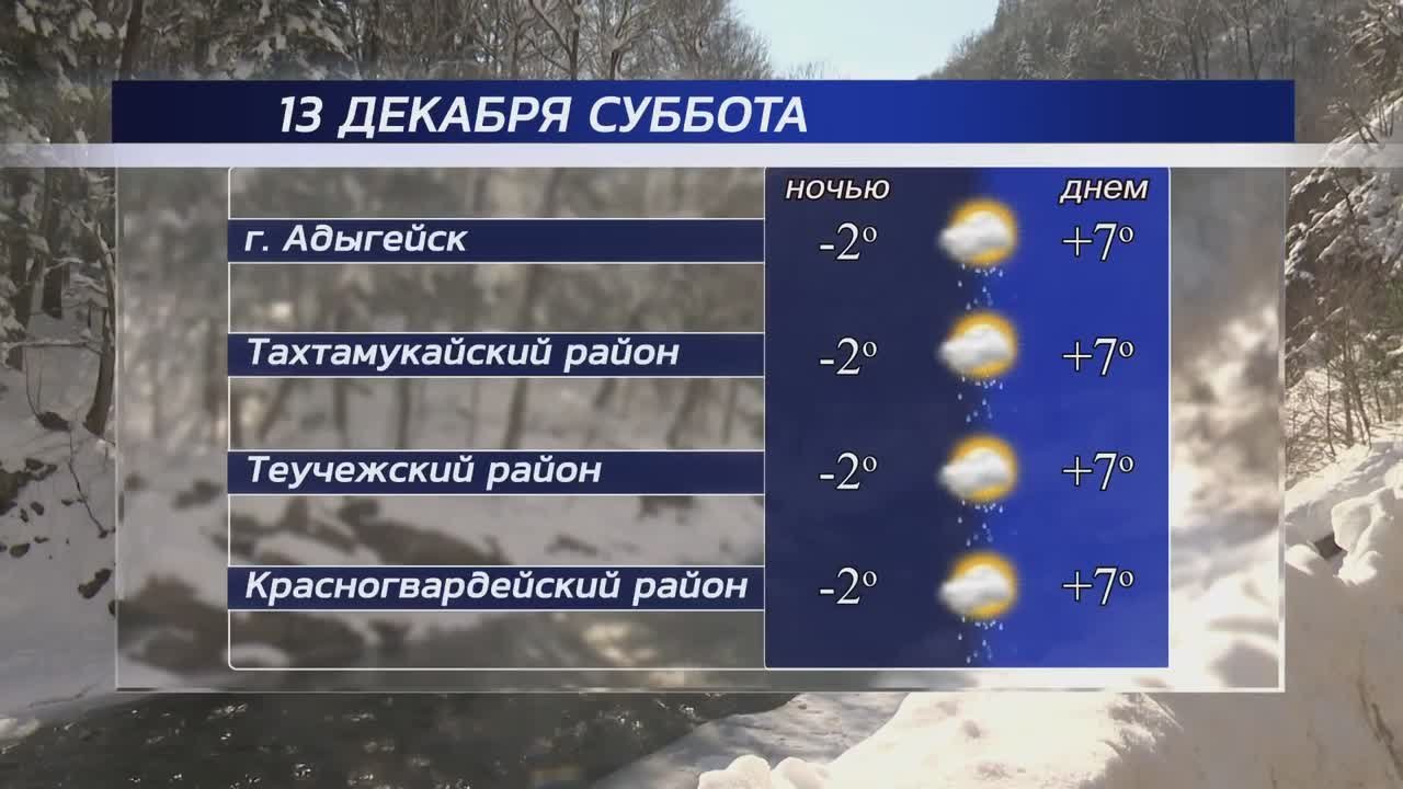 Температура воздуха в равнинной части -5… -4°C. Ветер 1 — 2 м/с.В горах:Лагонаки -10… -6°Cг. Оштен -17… -13°CЕлена Юсеф/Советская АдыгеяПодписаться на MAX