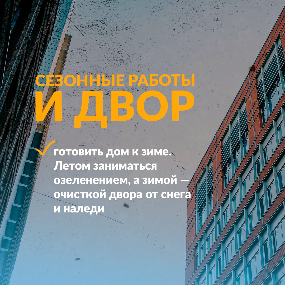 Листайте карточки, чтобы узнать основные зоны ответственности вашей УК.