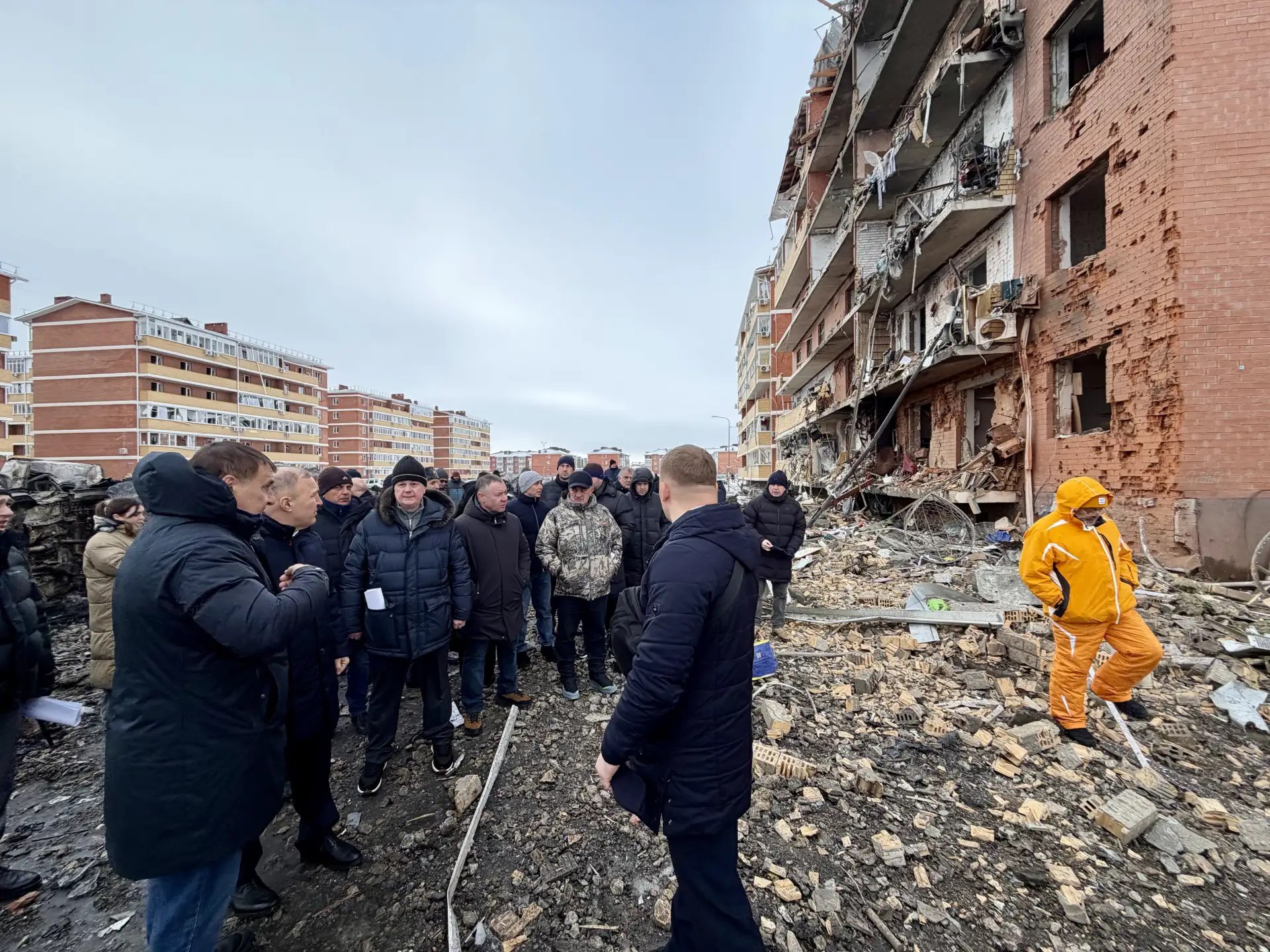 Глава республики Мурат Кумпилов утром, сразу по возвращении из командировки в Москву, лично выехал на место происшествия в Новую Адыгею. Он осмотрел пострадавший от вражеской атаки многоэтажный дом, прилегающую территорию.