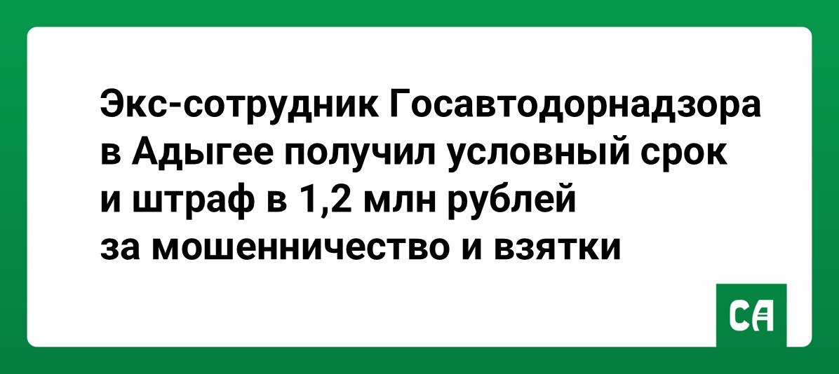 Экс-сотрудник Госавтодорнадзора в Адыгее получил условный срок и штраф в 1,2 млн рублей за мошенничество и взятки