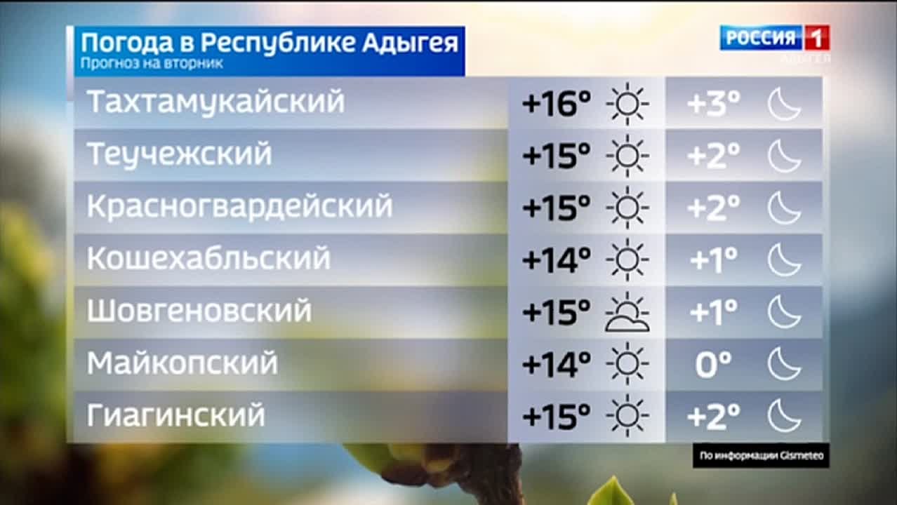 Доброе утро!28 апреля в Адыгее ясно, без осадков.Порывы ветра: до 12 м/с.Майкоп | Мыекъуапэ +13Адыгейск | Адыгэкъалэ +14Гиагинский район | Джэджэ район +13Кошехабльский район | Кощхьэблэ район +13Шовгеновский район | Шэуджэн район +13Красногвардейский...