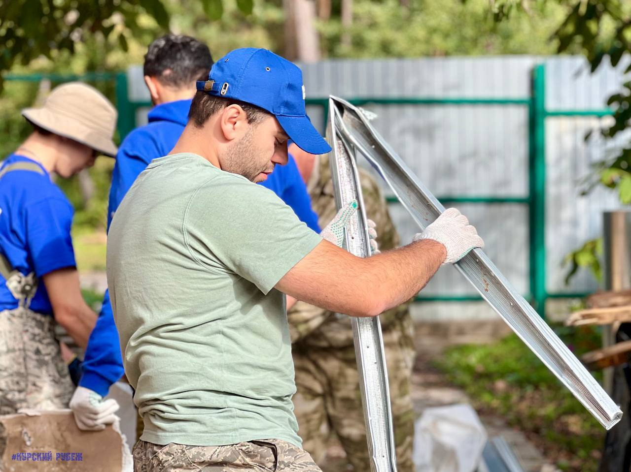 В рамках пятой смены «Курского рубежа» наши ребята вместе с командой активистов из 20 регионов страны помогали курянам восстанавливать соцобъекты и жилые дома, расчищали завалы от обстрелов украинских неонацистов и многое другое.