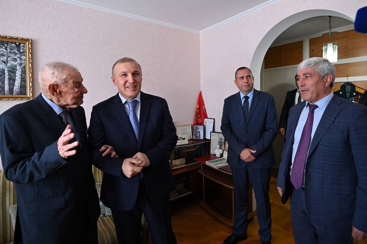 Мурат Кумпилов поздравил Ивана Дзюбу — ветерана Великой Отечественной войны, одного из старейших жителей республики, отметившего в начале года свой 100-летний юбилей. Руководитель региона вручил ему подарки, пожелал здоровья и всего самого доброго.