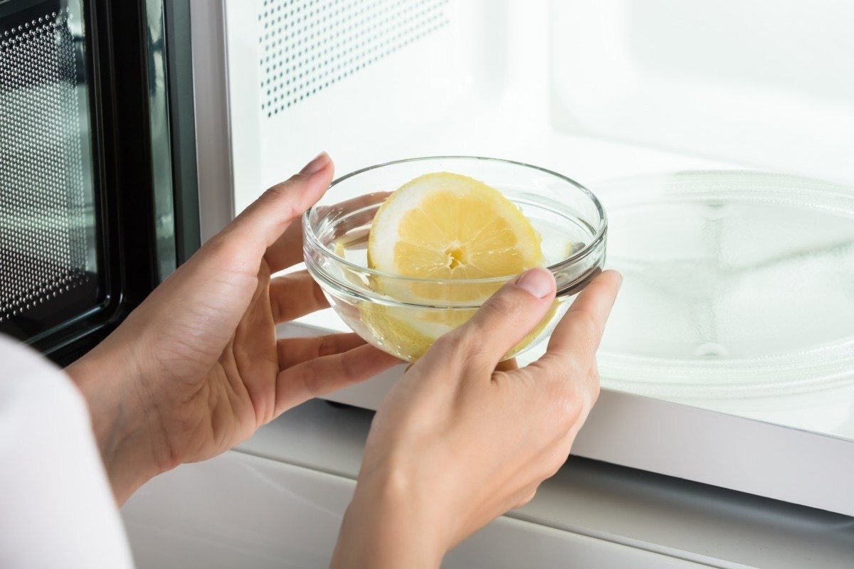 Лимонная кислота — отличный выбор, если в микроволновке накопился жир и налет от пищи. Этот способ подходит для более глубокой очистки. Для начала растворите одну столовую ложку лимонной кислоты в 250 мл воды или же используйте половину лимона, залитую водой. Аналогично первому методу, поставьте эту смесь в микроволновку на 5 минут и оставьте ещё на 10 минут. После этого извлеките емкость и протрите поверхность — загрязнения должны легко отходить благодаря паровому воздействию.