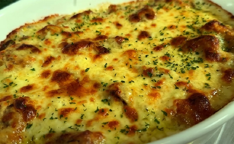- Соус: Масло сливочное — 1 ст. л., мука — 20 г, молоко — 250 мл, натертый сыр — 150 г