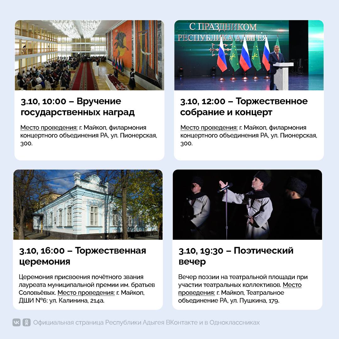 В карточках – программа основных мероприятий, посвященных Дню Республики Адыгея.