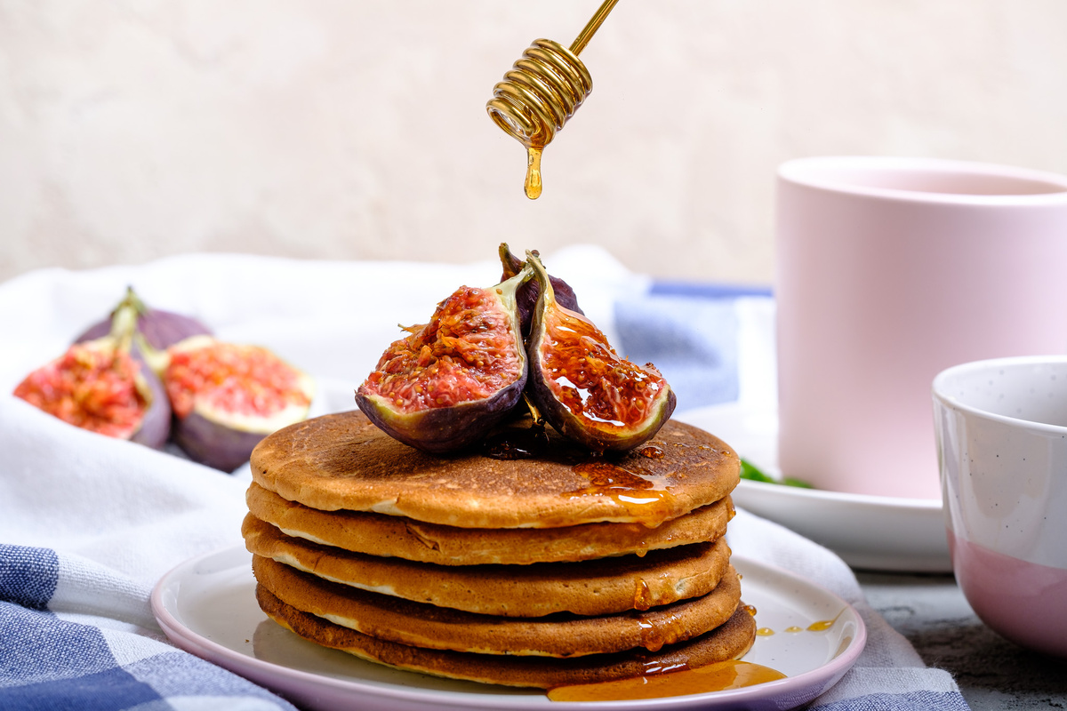 Сейчас идеальное время для инжира, и этот фрукт способен добавить нотку изысканности как к сладким, так и к несладким блюдам. Панкейки с инжиром и медом – настоящая находка для утреннего стола, где сладость инжира и меда прекрасно дополняют легкость теста, в котором сахар используется в минимальных количествах. Рецепт напоминает классические американские панкейки, но с уникальным сочетанием вкусов.