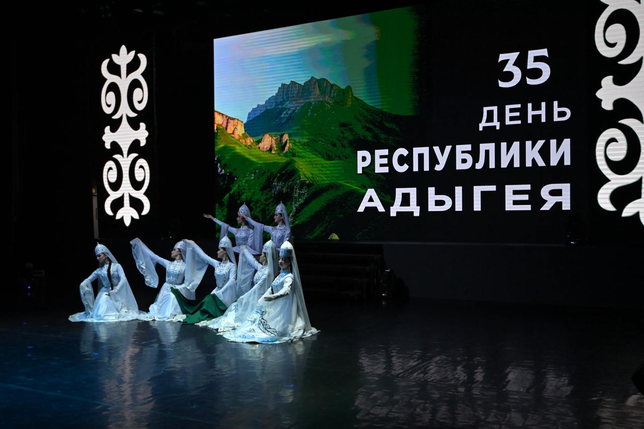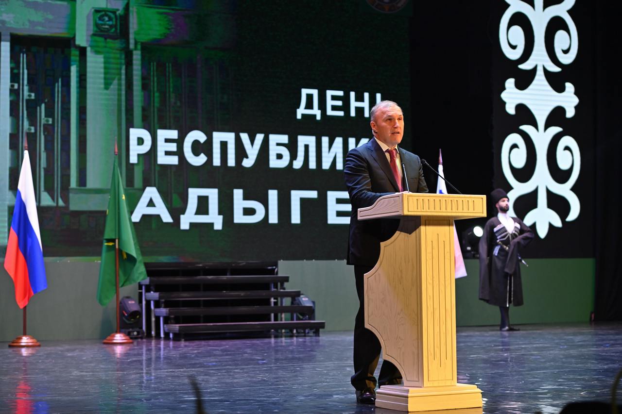 Выступая перед собравшимися в зале, Глава Адыгеи отметил, что юбилей республики – замечательный подвод вспомнить все, что составляет богатство малой родины: традиции, историю, культуру и общие успехи, которыми можно по праву гордиться. Особой ценностью, по словам руководителя региона, является дружба и единство народов, проживающих в солнечной и гостеприимной Адыгее.