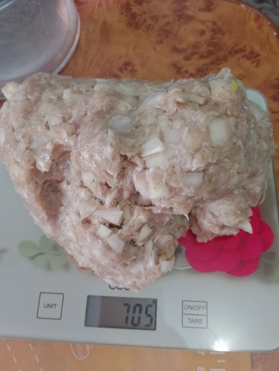Что касается теста, то для одного мант необходимо около 40 граммов. Погрешности в 2-3 грамма не критичны. Чтобы узнать, как приготовить тесто, можно ознакомиться с предыдущими рецептами. Важно отметить, что общий вес теста с фаршем должен составлять примерно 90 граммов, где 50 граммов — это сам фарш.