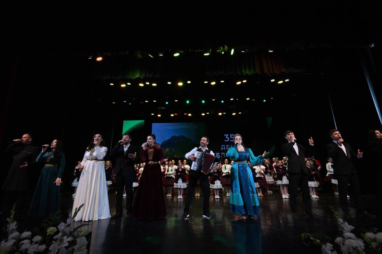 В 17:15 начнется детский блок, в 18:15 - большой праздничный концерт. Для жителей и гостей республики выступят именитые артисты и коллективы региона: ансамбли «Нальмэс», «Исламей», «Синдика», «Ащэмэз», «Шпаргалка», «Радуга», «Долина», «Сюрприз», «Вечный огонь», «Калина красная», солисты Камерного музыкального салона, а также Азамат Биштов, Анзаур Миш, Аслан Тлебзу, Айдамир Эльдаров, Вячеслав Евтых, Сусанна Даутова, Артур Дышеков, Нэсрэн Чилар, Фатима Гонежук, Азмет Джандар, Марина Макаова, Аза Хуранова, Давид Овчинников, Елизавета Призова, Зара Цишева.