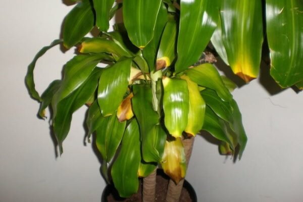 - Сухой воздух. Этот тропический цветок требует высокого уровня влажности - не менее 60%. Чтобы создать комфортные условия, следует регулярно опрыскивать драцены и поддерживать оптимальную влажность с помощью увлажнителей.