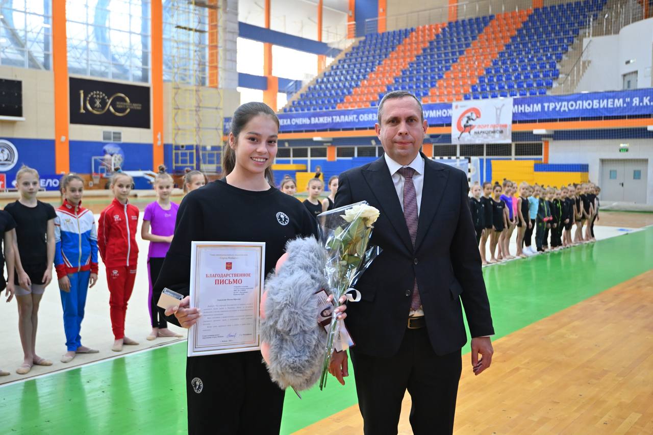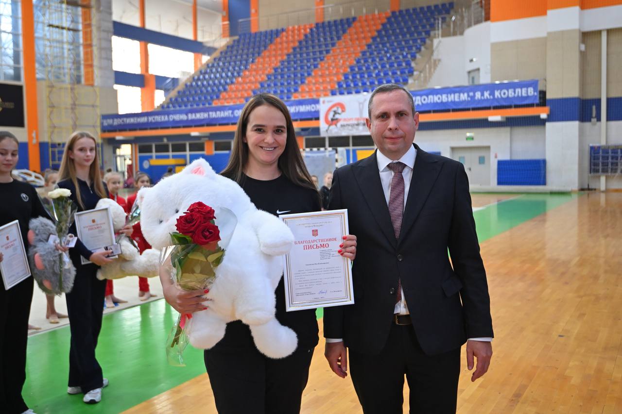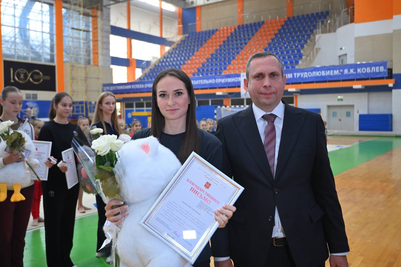 Вручил нагрудные значки и удостоверения «Мастер спорта России» учащимся отделения художественной гимнастики городской спортшколы имени В.С. Максимова.