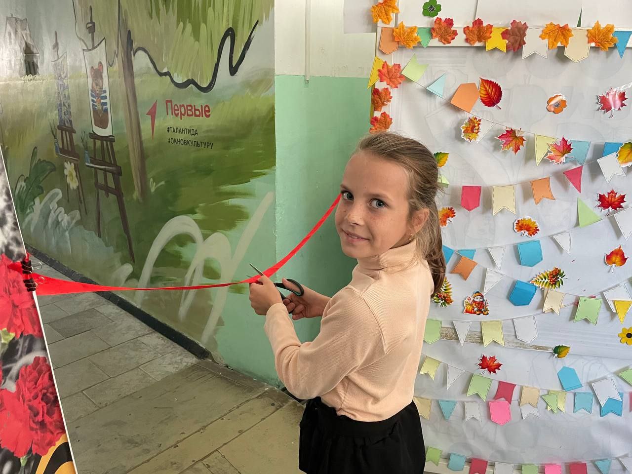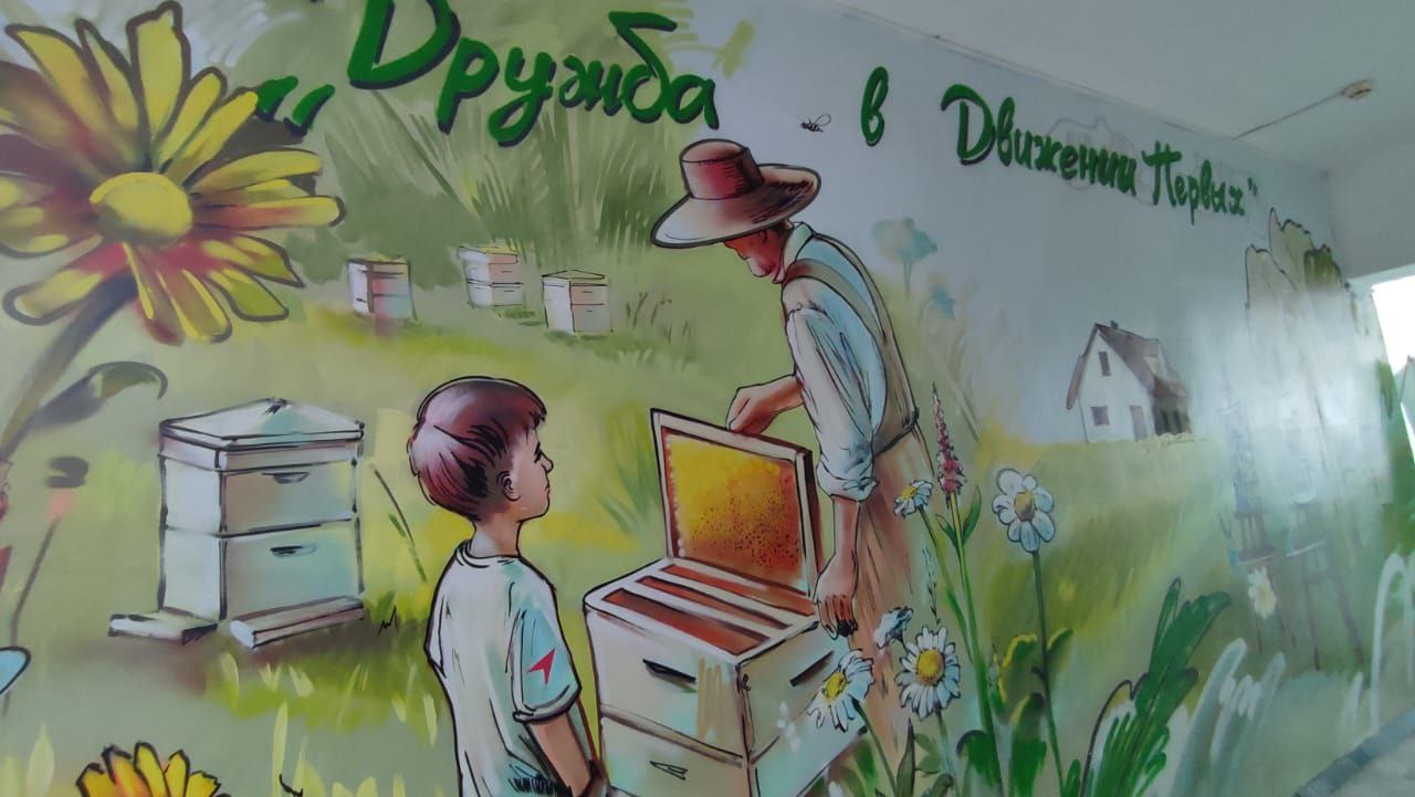 Арт-объект создан в рамках проекта «Творческая перезагрузка школьных пространств «Окно в культуру. Часть II» и посвящен Году дружбы в «Движении Первых». Авторами рисунка о взаимном обучении и передаче опыта стали ученики школы Полина Мухонькова, Арина Ракова и Владислав Дегтярев.