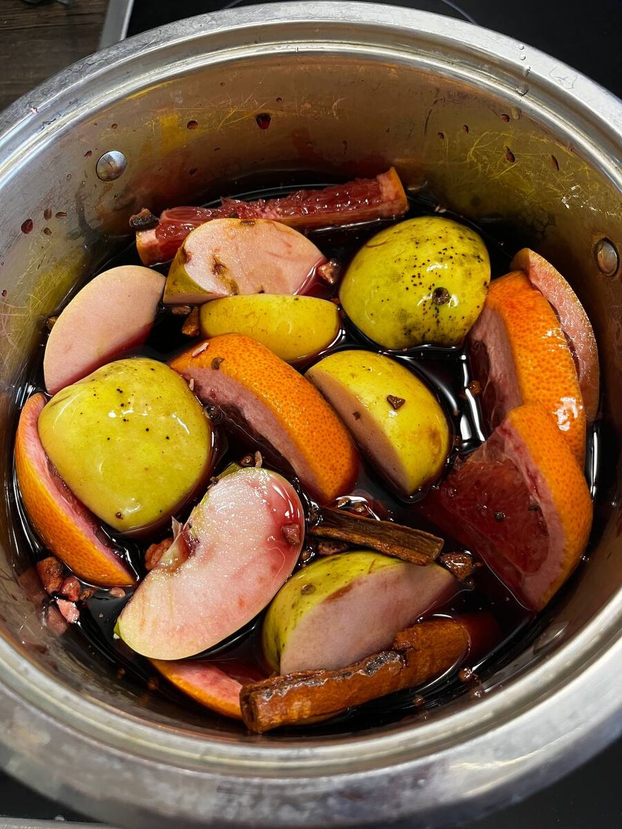 Если планируется увеличить порцию до двух бутылок, просто добавьте два яблока и целый грейпфрут. Для любителей менее сладкого послевкусия можно заменить грейпфрут на апельсин — глинтвейн получится с легкой горчинкой, что обеспечит интересный контраст вкусов.