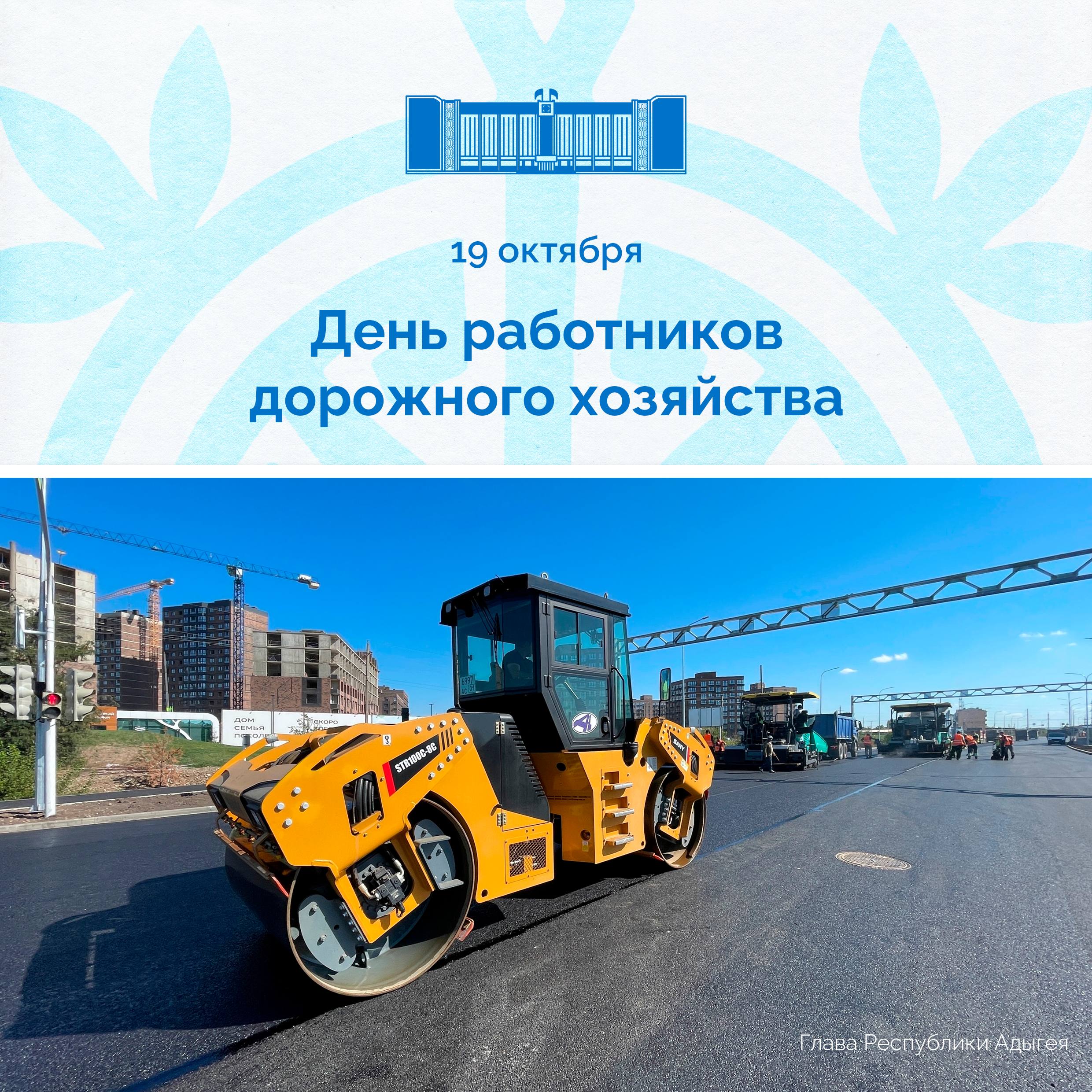Уверен, что работники дорожной отрасли республики благодаря своему высокому профессионализму и богатому опыту будут и далее вносить весомый вклад в формирование современного облика Адыгеи, в создание благоприятных условий для ее дальнейшего устойчивого социально-экономического развития. Выражаю искреннюю признательность и ветеранам, заложившим основу современного дорожного хозяйства, всем, кто сегодня приумножает их славные трудовые традиции.