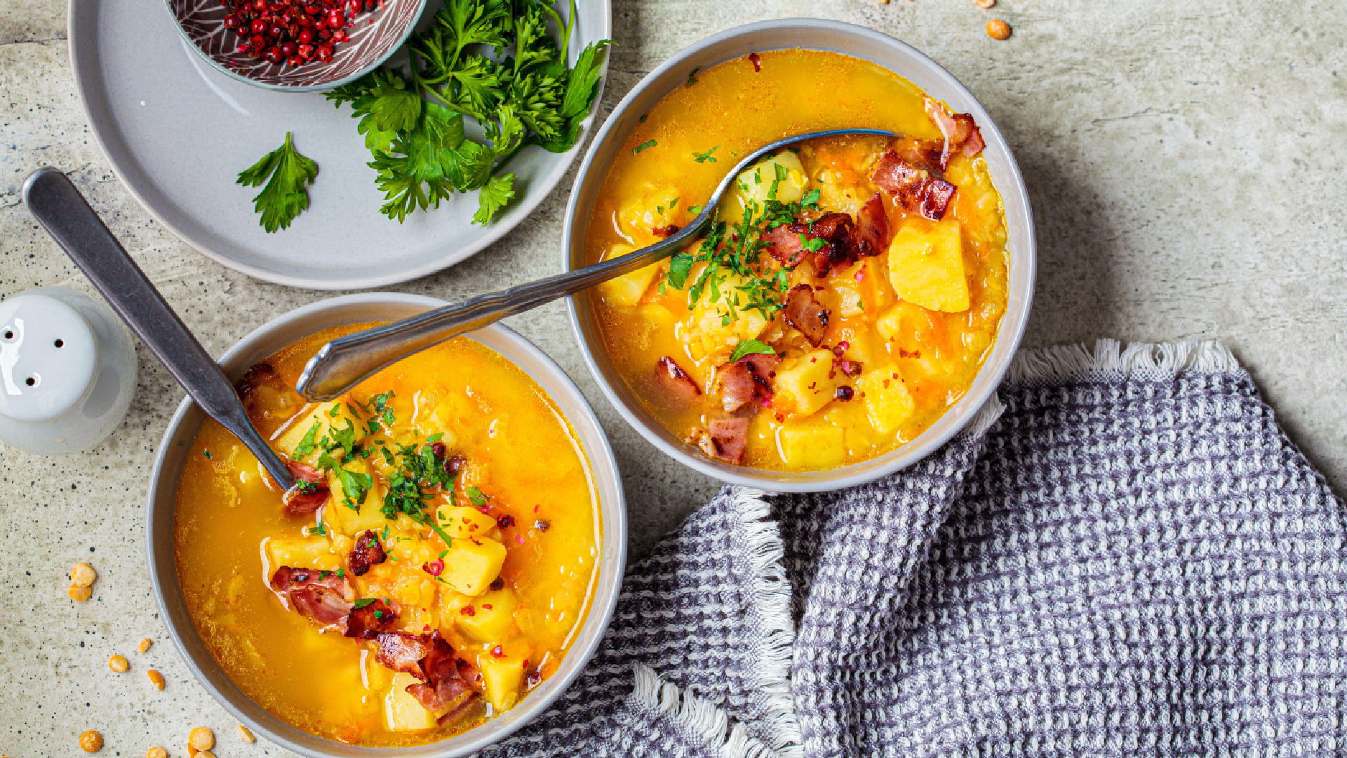 Картошку порубите на дольки и отправите в кастрюлю. Через 5 минут добавьте туда же остальные овощи. Мелко нарежьте зелень и зубчики чеснока без кожуры. Добавьте в блюдо вместе с горчицей. Варите суп 3 минуты и снимайте с огня. Теперь перчите и солите по вкусу, советует портал «Гастрономъ».