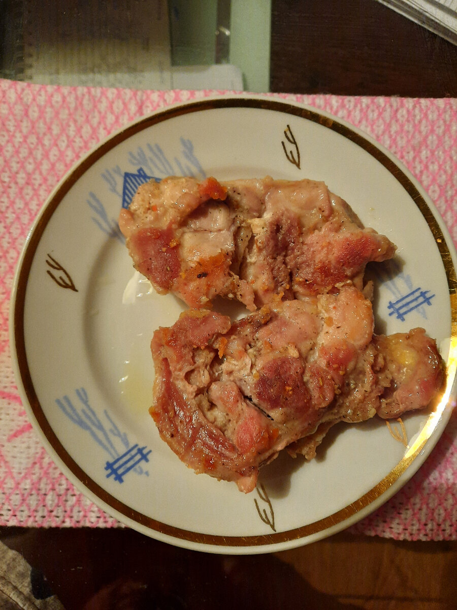 Следующий этап – разогрев сковороды. Масло добавлять не нужно; достаточно выложить замаринованные бедра на сильно нагретую поверхность. Обжаривайте с одной стороны в течение 3-4 минут, пока не появится золотистая корочка.