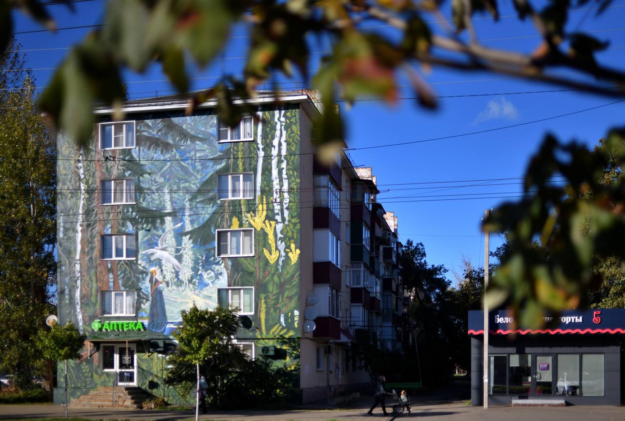 Мурал, созданный по мотивам картины Константина Васильева, появился на торце жилого дома по улице Пролетарской, 413.