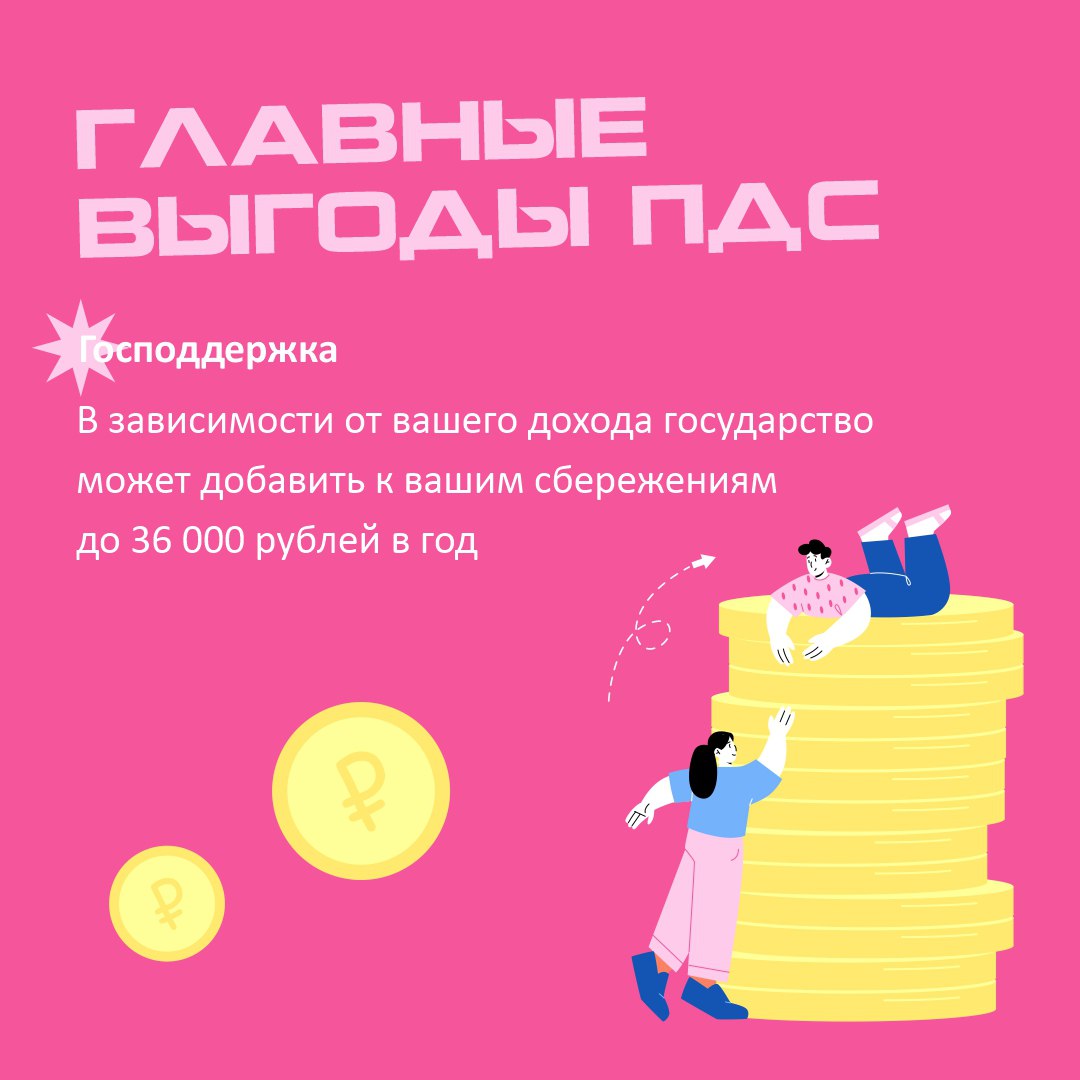 государственное софинансирование: государство может добавить до 36 000 руб./год (зависит от дохода);