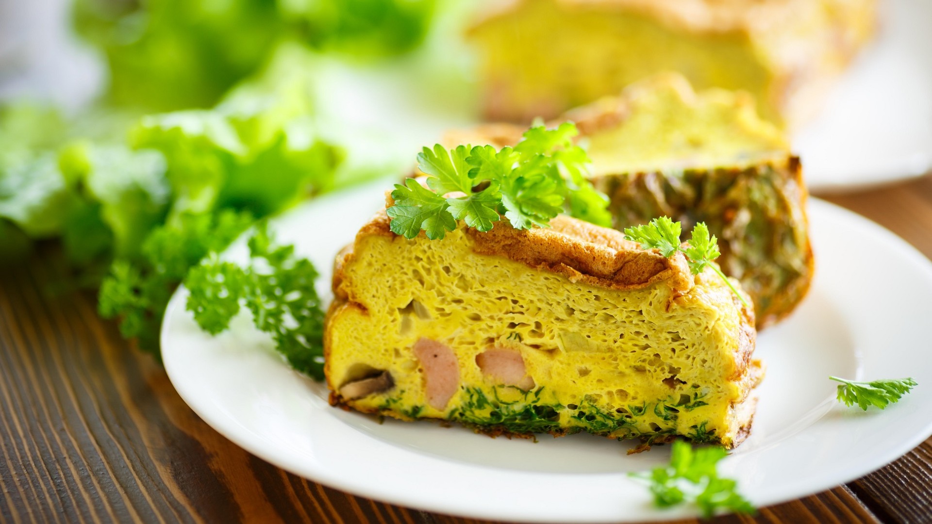 Смажьте маслом сковороду с высокими бортиками. Вылейте в нее получившуюся смесь и отправьте на 15 минут в духовку, разогретую до 200 градусов. Во время готовки не открывайте дверцу, иначе омлет потеряет свою пышность из-за температурного перепада. Готовность блюда сможете определить по зарумянившемуся верху, сообщает портал «Повар».