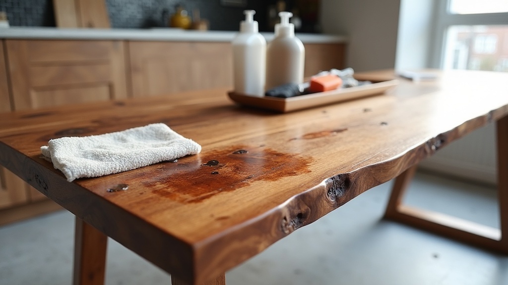 Затем важно определить, из какого материала сделан ваш стол. Древесина, покрытая лаком или маслом, и мебель, сделанная из эпоксидной смолы—все они могут реагировать на различные средства по-особенному.