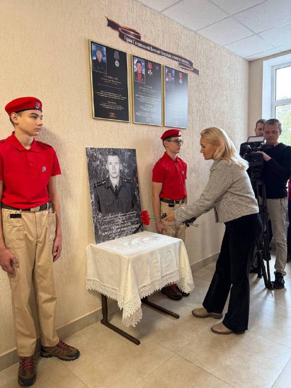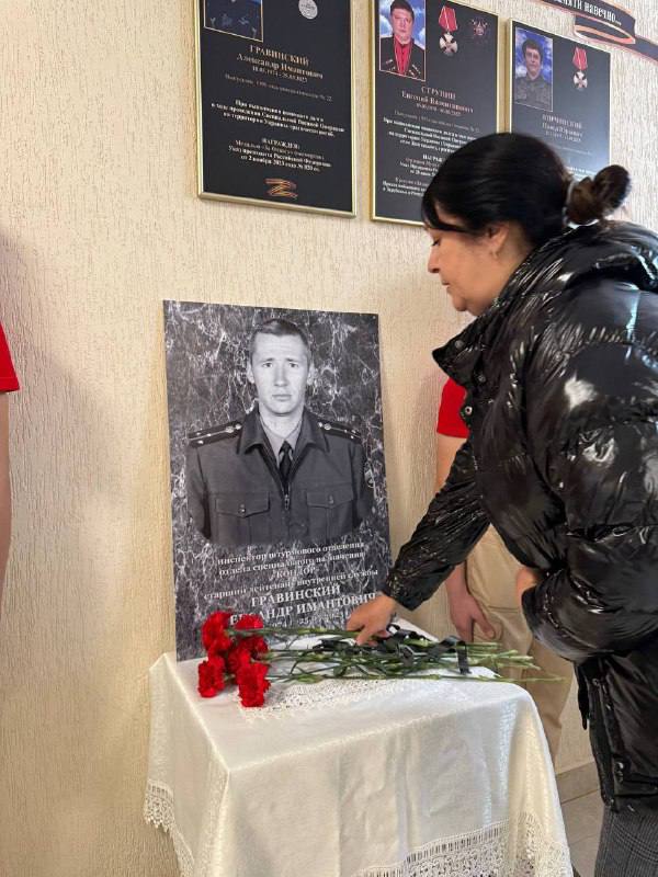 Здесь состоялось открытие мемориального стенда, посвященного выпускнику учебного заведения – старшему лейтенанту Александру Гравинскому. Офицер погиб при исполнении воинского долга в ходе специальной военной операции.