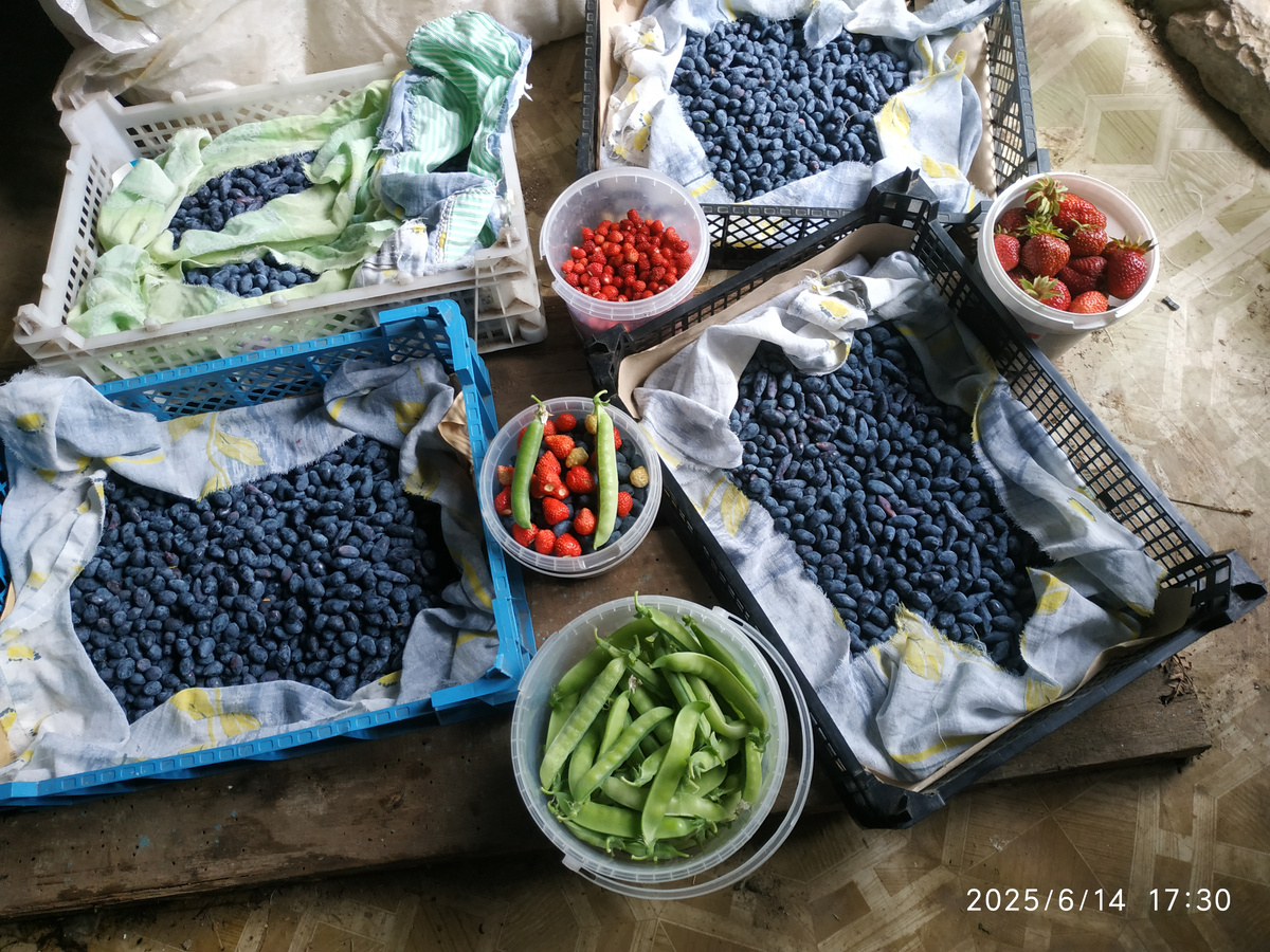 На этой неделе закончился очередной сбор жимолости. Примечательно, что это уже третий раз, когда собранные ягоды радуют своим изобилием. В отличие от других культур, жимолость требует стабильной температуры и может пострадать от резких изменений погоды.