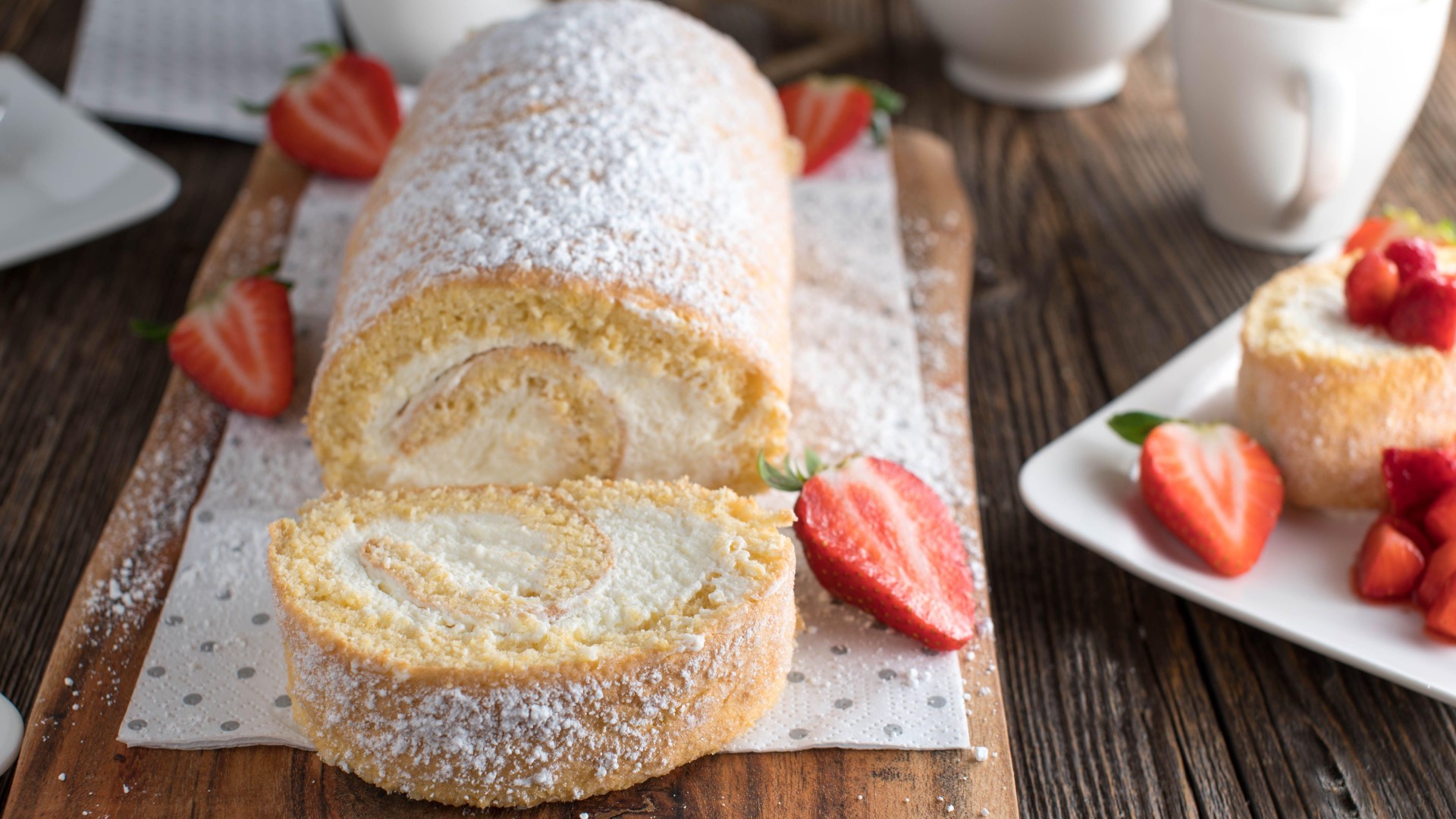 Снимите бумагу с горячего бисквита, положите на полотенце и вместе с тканью скатайте в рулет. Дайте заготовке остыть. Разверните бисквит и смажьте соусом из смеси сметаны и джема. Сверните заготовку в рулет, но уже без полотенца. Заверните десерт в пищевую пленку и отправьте в холодильник, чтобы он настоялся, советует дзен-канал «Готовим с Оксаной Пашко».