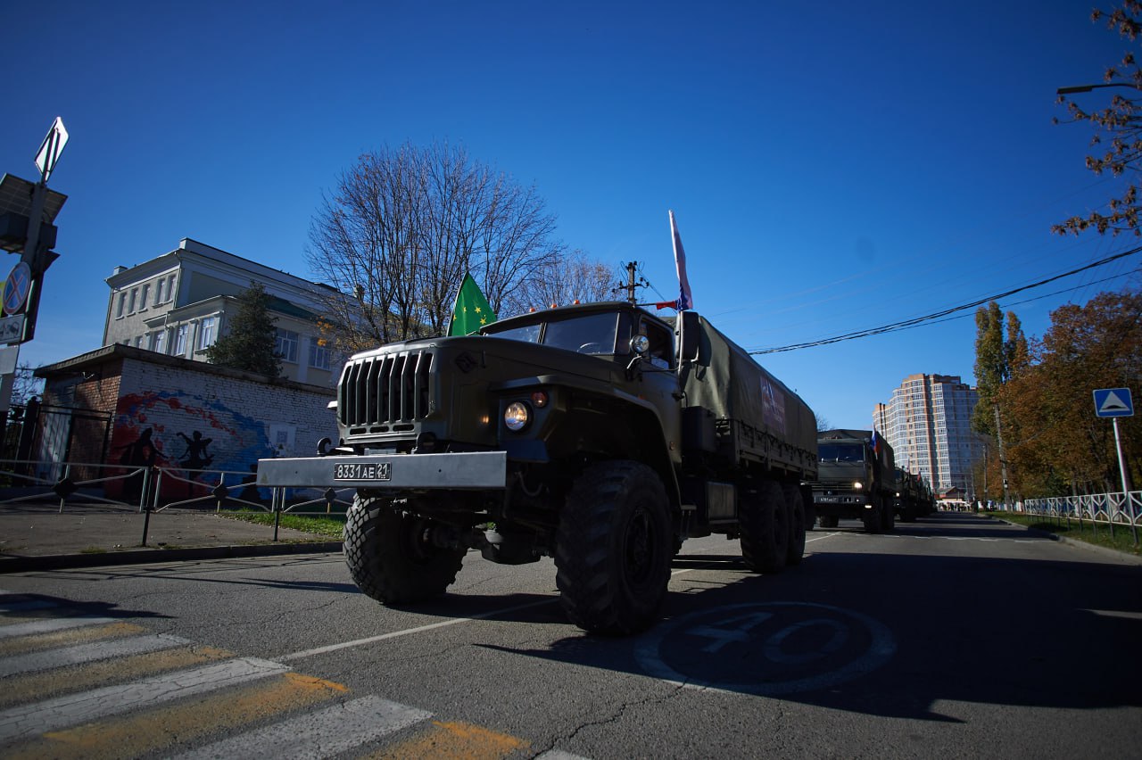 Колонна стартовала с площади Дружбы в Майкопе, где отмечался праздник.