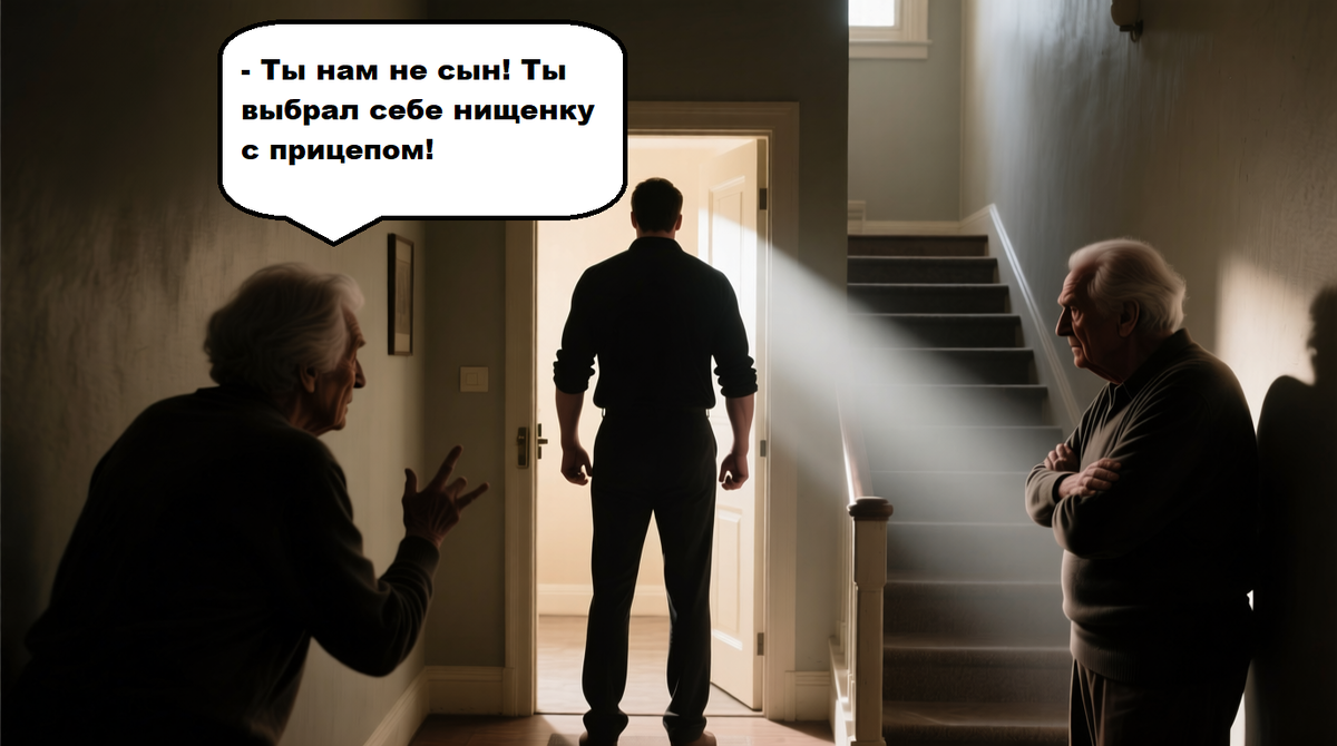 Ситуация изменилась, когда герой познакомился с Таней — женщиной с ребенком, которая была не по вкусу его родителям. Их крики и оскорбления, включающие фразы типа: «Ты нам не сын!» и «Вернешься к нам на коленях!» только укрепили его решимость. Убежав с Таней в другой город, он начал новую жизнь с нуля. Удалось не только построить свою семью, но и открыть небольшой бизнес, а также приобрести собственное жилье. За 16 лет не было ни звонка, ни попытки восстановить связь с родителями.