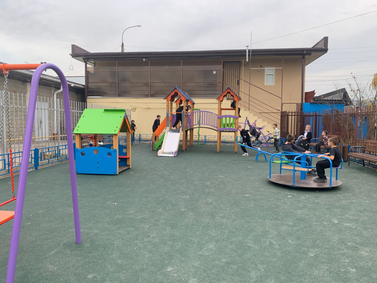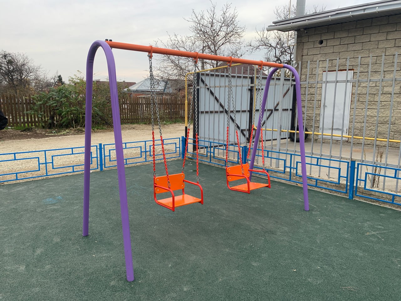 В ходе благоустройства детской площадки специалистами подрядной организации выполнено устройство прорезиненного покрытия, уличного освещения, установлены детский игровой комплекс, балансир, качели, карусель, игровой домик, скамейки и урны.