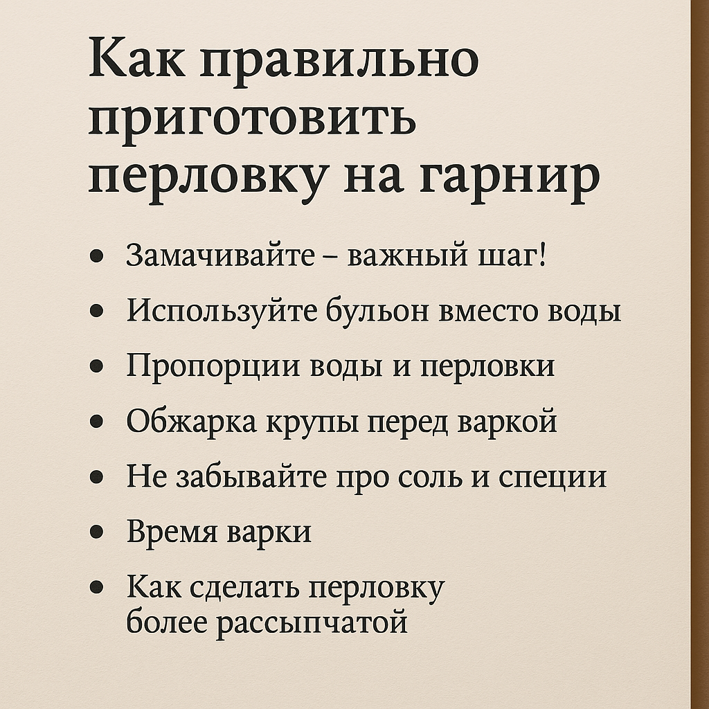 Перловка варится в среднем 40-50 минут. Главный секрет — следить за текстурой: она должна быть мягкой с легкой твердостью внутри. Если она достигла нужной консистенции, слейте лишнюю воду и оставьте под крышкой, чтобы она дошла.