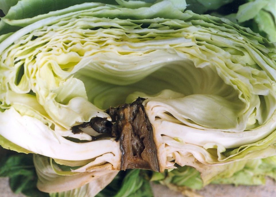 Если листья капусты выглядят увядшими, гниют или чернеют, это может свидетельствовать о большом количестве проблем, среди которых бактериоз. Этот недуг уничтожает листья, преобразуя их в гнилостные комки, и, как правило, носит хронический характер. Патоген может появиться на самых верхних листьях и постепенно продвигаться вниз.