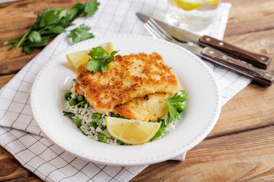 На финальной стадии готовый рис смешать с оливковым маслом, обжаренным горошком и нарезанной петрушкой. Подавать треску с рисом горячей, сбрызнув по желанию лимонным соком. Это блюдо станет ярким украшением вашего ужина и зарядит энергией на весь вечер!